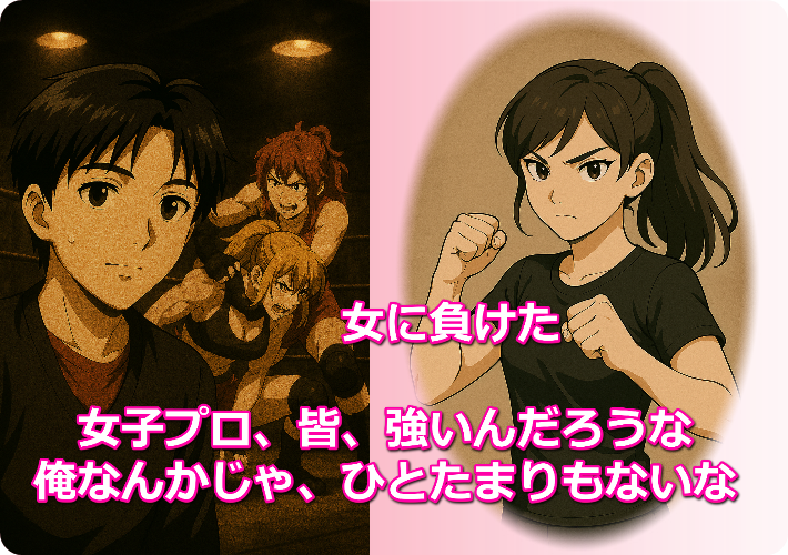 素人の女子プロもどきにも、なすすべなくボコられてしまうんだ、
